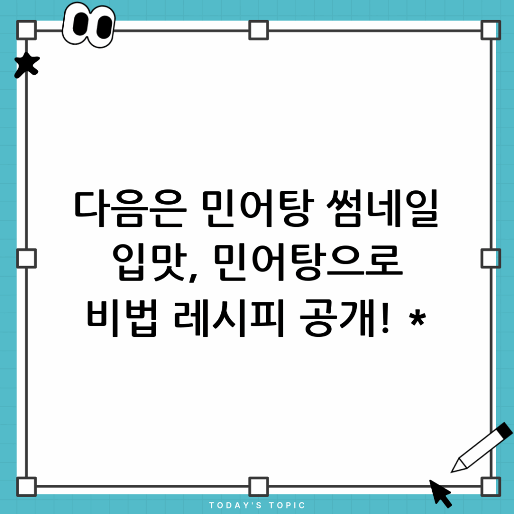 여름철 보양식, 민어탕 맛있게 끓이는 방법 전격 공개! 여름 하면 떠오르는 대표적인 보양식, 바로 민어탕이죠! 담백하면서도 깊은 맛이 일품인 민어탕은