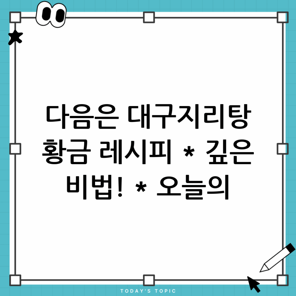 집에서 맛보는 깊은 맛, 대구지리탕 맛있게 끓이는 황금 레시피! 쌀쌀한 날씨에 따뜻하고 시원한 국물 요리가 생각날 때, 맑고 개운한 대구지리탕은