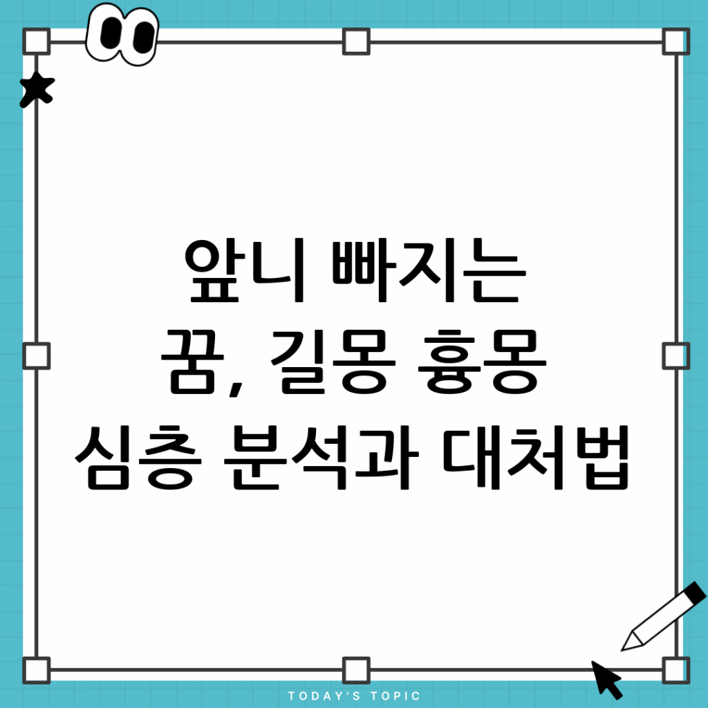 앞니 하나 빠지는 꿈해몽: 길몽일까 흉몽일까? 심층 분석과 대처법 꿈은 우리 무의식의 거울이자 현실을 비추는 신비로운 창입니다. 특히 앞니 하나
